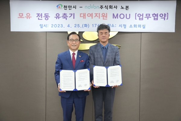 이번 협약에 따라 천안시는 전동유축기 대여 지원사업을 주식회사 노본에 위탁하고 주식회사 노본은 전동유축기 제품 수급 관리 및 산모들의 편의와 만족도 증대 등을 위해 협조한다.