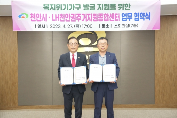 [세종타임즈] 천안시는 지난 27일 시청 소회의실에서 LH천안권주거지원종합센터와‘복지사각지대 위기가구 발굴·지원을 위한 업무협약’을 체결했다.