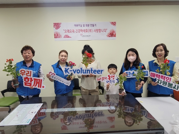 한편 홍성군자원봉사센터는 매년 어버이날이면 자원봉사들과 함께 제작한 꽃 화분을 홀몸 어르신들께 전달해 따뜻한 온정을 나누고 있다.
