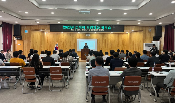 이번 워크숍은 군 산하 시설직 간의 업무역량 강화와 함께 전문적 업무능력 향상 및 민원응대, 토목 직렬 분야 건설행정 업무능력 향상 등을 위해 마련됐다.