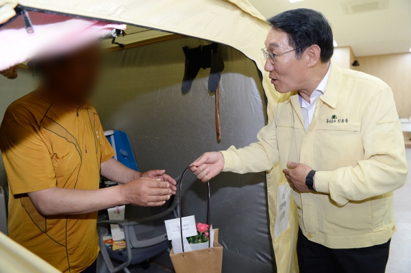 [세종타임즈] 이용록 홍성군수와 국응서 노조위원장은 어버이날을 앞두고 지난 5일 서부면 문화누리센터를 방문해 이재민 15세대 23명에게 카네이션과 떡을 전달하며 위로하고 격려하는 시간을 가졌다.