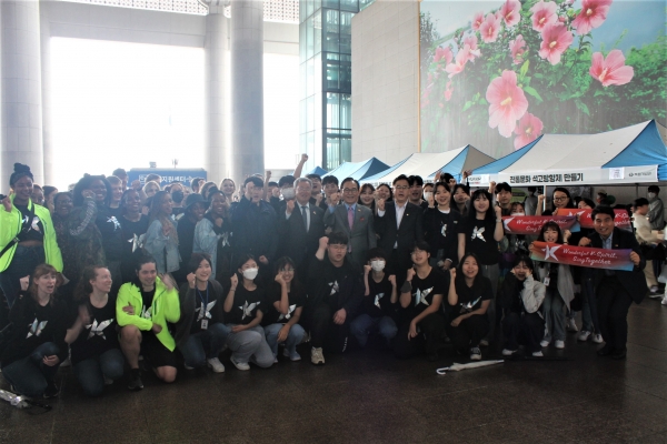 원어민영어 보조교사 38명은 지난 5일 독립기념관에서 열린 ‘D-100일 기념 K-컬처 박람회 출범식’에 참석해 K-컬처를 상징하는 다양한 캐릭터로 분장하고 관람객과 함께 퍼포먼스를 펼쳤다.