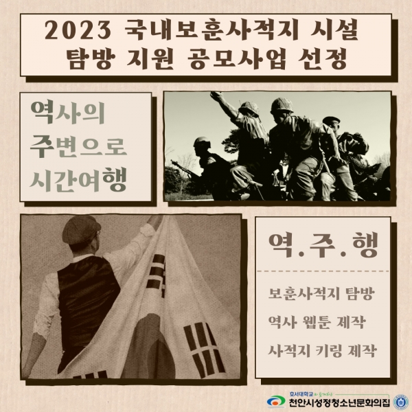 참여 청소년은 도내 6·25전쟁이나 3·1운동 관련 보훈 사적지를 탐방하고 역사 웹툰과 사적지 키링을 제작해 국내 보훈사적지를 홍보할 계획이라고 전했다.