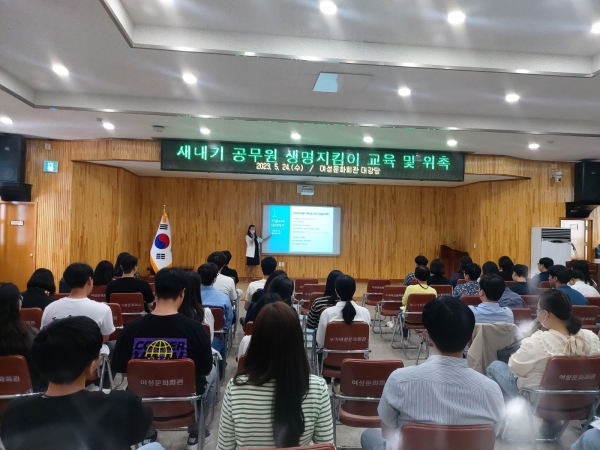 이번 생명지킴이 교육은 전문강사를 초빙해 2022년부터 신규 임용된 공무원을 대상으로 실시하고 있는 보건복지부 생명지킴이 인증교육인 생명이어달리기 교육으로 진행됐다.