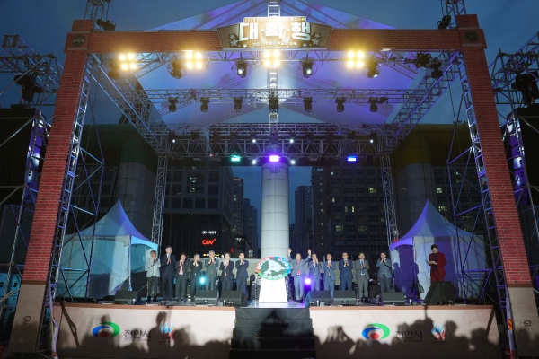 개막식에서는 박상돈 천안시장과 12개 대학 총장들이 천안시와 각 대학의 엠블럼을 조형물에 삽입하는 개막 퍼포먼스를 펼치면서 ‘대학도시 천안’을 선포하고 이어 가수 빌리, 케이시, 에일리의 축하공연과 불꽃놀이가 참석자들에게 추억을 선물했다.