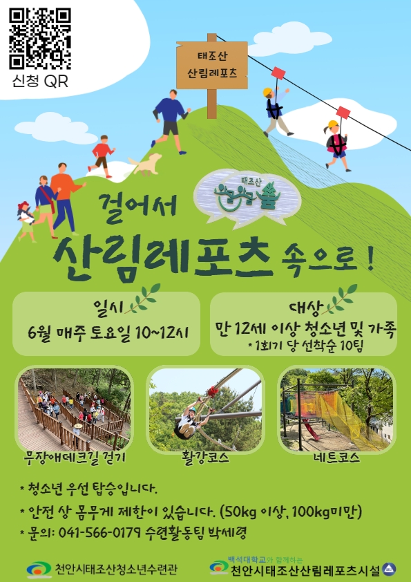 [세종타임즈] 천안시태조산청소년수련관은 6월 ‘걸어서 산림레포츠 속으로’를 운영한다고 밝혔다.