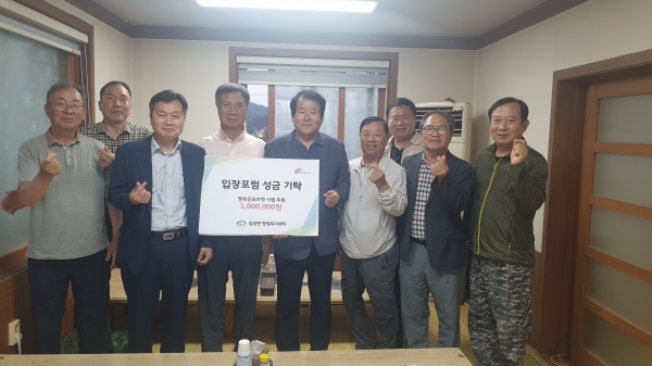 임익렬 입장면장은 “취지에 공감해 주시고 정성을 모아주신 입장포럼 회원님들께 감사드린다”며 “기탁해주신 성금은 행복공유마켓 사업이 잘 정착해 어려운 이웃들에게 힘이 될 수 있도록 사용하겠다”고 전했다.