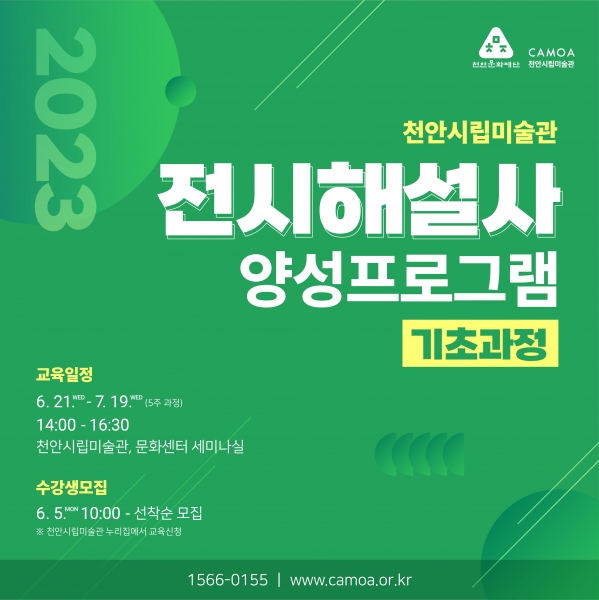 [세종타임즈] 천안문화재단 천안시립미술관은 5일 오전 10시부터 ‘2023 전시해설사 양성프로그램’참여자를 선착순 모집한다고 2일 밝혔다.