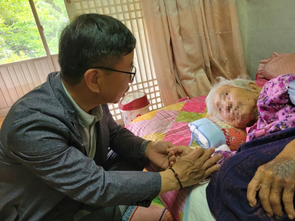 이날 방문한 가구는 건강이 좋지 않아 병원에 있다가 퇴원한 어르신으로 안부 확인과 함께 간호직 공무원의 혈압, 혈당 체크 검사를 시행해 건강관리 상담이 이루어졌다.