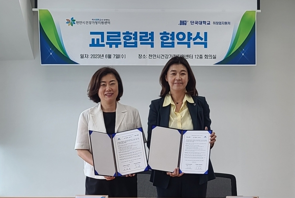 [세종타임즈] 천안시건강가정지원센터와 단국대학교 대학일자리플러스센터는 지난 7일 긴밀한 업무협력 체계를 구축하기 위해 업무 협약을 체결했다.
