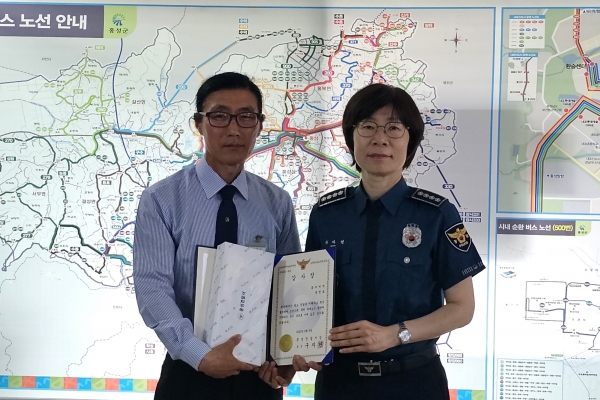 [세종타임즈] 홍성군민의 발 홍주여객자동차의 버스기사 윤명호씨가 지난 6월 5일 구자면 홍성경찰서장에게 감사장을 받았다.
