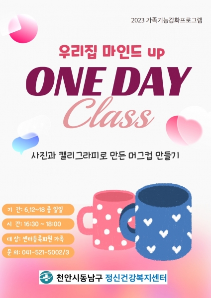 [세종타임즈] 천안시 동남구 정신건강복지센터는 등록대상 아동·청소년과 가족을 대상으로 ‘우리집 마인드 UP’ 가족기능강화 프로그램을 운영한다고 12일 밝혔다.