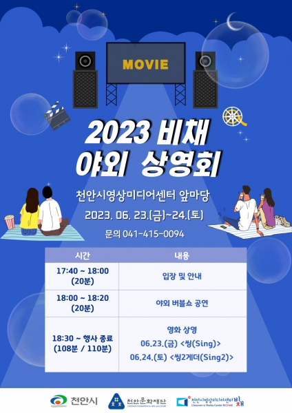 [세종타임즈] 천안문화재단는 23일부터 24일까지 천안미디어센터에서‘2023 비채 야외 상영회’를 운영한다고 19일 밝혔다.