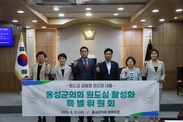홍성군 원도심 활성화 특별위원회는 권영식 의원을 위원장으로 선임하고 간사는 최선경 의원, 위원으로 장재석 의원, 김은미 의원, 윤일순 의원, 이정희 의원으로 구성했다.