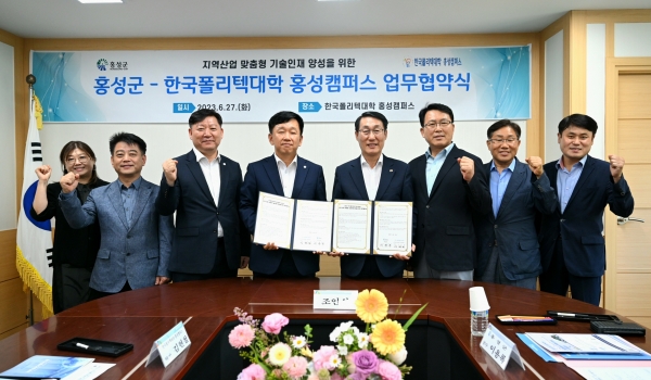 [세종타임즈] 홍성군이 지난 27일 한국폴리텍대학 홍성캠퍼스와 지역 미래산업 맞춤형 기술인재 양성을 위합 업무협약을 체결했다고 밝혔다.
