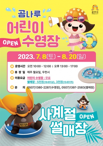 [세종타임즈] 공주시가 본격적인 피서철을 맞아 곰나루 어린이 수영장과 금학생태공원 사계절 썰매장을 7월 8일부터 8월 20일까지 운영한다.