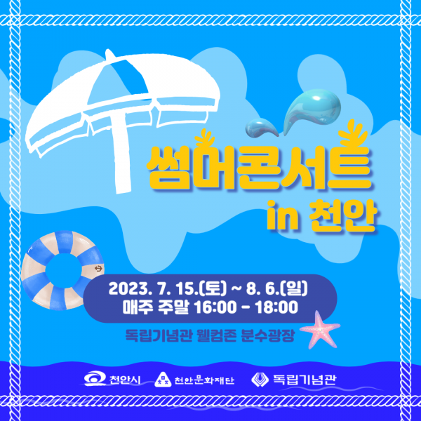 이번 행사는 오는 15일부터 8월 6일까지 4주간 매주 주말 오후 4시부터 6시까지 독립기념관 웰컴존 분수광장 특설무대에서 진행된다.