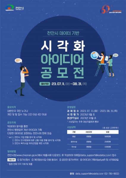 [세종타임즈] 천안시는 데이터 분석을 토대로 행정업무의 혁신과 시정 발전에 기여할 창의적인 아이디어를 발굴하기 위해 ‘천안시 데이터 기반 시각화 아이디어 공모전’을 개최한다.