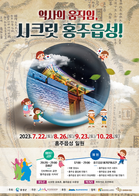 충남 역사·문화·생태 융합형 관광콘텐츠 개발 공모사업으로 추진하는 '역사의 움직임, 시크릿 홍주읍성' 은 문화공연 콘텐츠와 다양한 체험을 접목해 홍주읍성을 문화관광 공간으로 조성해 원도심 공동화 현상을 해소하고 주변 상가를 활성화하기 위해 기획됐다.