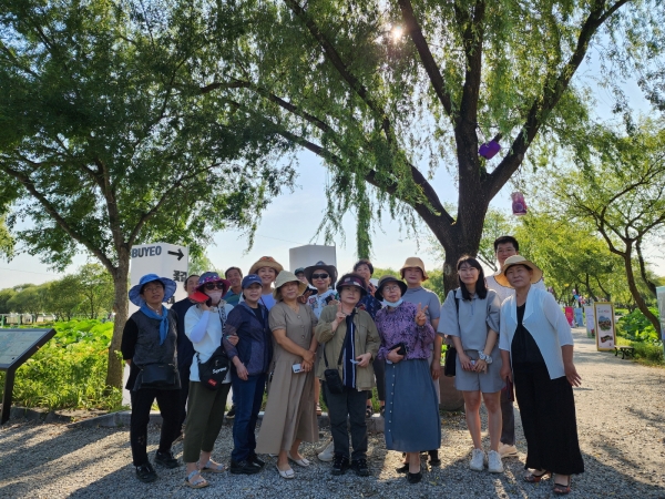 [세종타임즈] 부여군의 다양한 모습을 알리기 위해 홍보 활동을 하고 있는 부여군정보화농업인연구회가 이번에는 부여서동연꽃축제 홍보를 위해 궁남지를 찾았다.