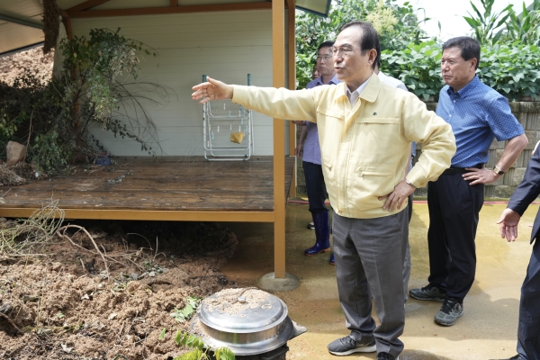 박 시장은 집중호우로 인해 산사태가 발생한 수신면 발산리 일대에 들러 피해 상황 등을 보고받고 대피한 인근 주민 17명을 만나 이들을 위로하면서 애로사항을 청취했다.