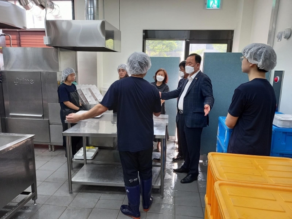 특히 장애인 근로자를 직접 채용하는 직업재활시설인 사회적 협동조합 나로일터에서는 근로자와 구슬땀을 흘리며 함께 식판을 세척하고 있는 이정주 대표에게 감사와 격려의 말씀을 전했다.