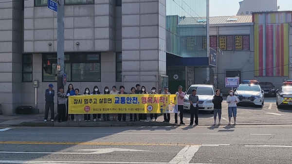 이날 캠페인은 출퇴근 시간대인 오전 8시부터 9시까지 남부오거리에서 진행됐다.