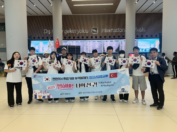 [세종타임즈] 천안시태조산청소년수련관은 천안시 청소년 10명이 7월 30일~8월 5일 7일간 일정으로 튀르키예 뷰첵메제시를 방문해 현지 청소년들과 상호교류 활동을 진행한다고 밝혔다.