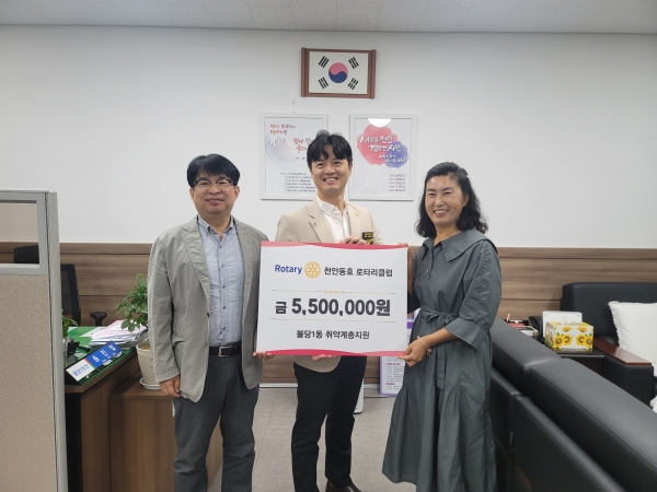 [세종타임즈] 천안동호 로타리클럽은 2일 결식아동을 위해 불당1동에 550만원을 기부했다.