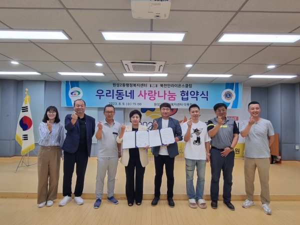 이번 협약에 따라 북천안라이온스클럽은 취약계층 대상 후원물품 및 성금 전달, 침수예방 등 자원봉사, 위기가정을 위한 인적·물적 자원 연계 등 원성2동에서 추진하는 맞춤형 복지업무를 지원하게 된다.