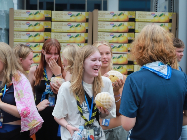 성환읍 주민자치회와 천안배원예농협, 청사회, 국제로타리 성환클럽, 적십자 봉사회는 배 5kg 160박스와 생수 1000개를 잼버리 스웨덴 대표단을 위해 지원했다.