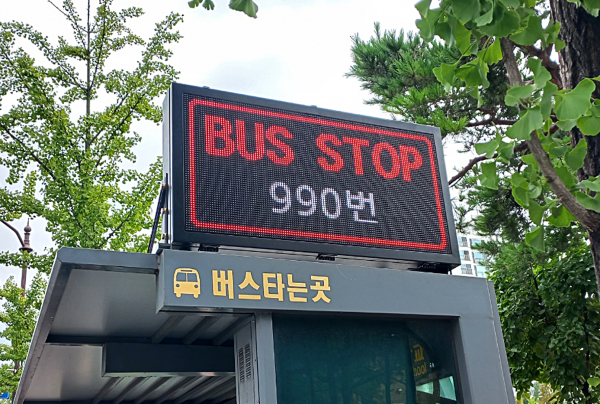 전광판은 버스 운전자에게 잘 보이도록 버스정류장 상단에 설치됐으며 승객이 없을 때는 날씨, 기온, 미세먼지 정보를 비롯해 천안시 행사나 시정 등을 홍보하는 데에도 활용된다.