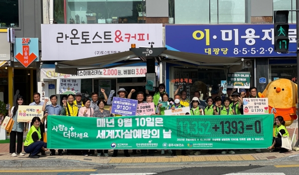 [세종타임즈] 공주시는 ‘세계 자살 예방의 날’을 맞아 생명 존중 문화를 확산하기 위한 자살 예방 캠페인과 기념행사를 개최했다.