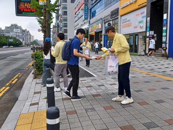 시는 14일 불당동과 두정동 일원에서 행정안전국장을 포함한 안전총괄과·불당2동·부성2동 공무원, 자율방재단이 참여한 가운데 시민대상으로 지진안전 홍보물 배부 등 홍보를 실시했다.