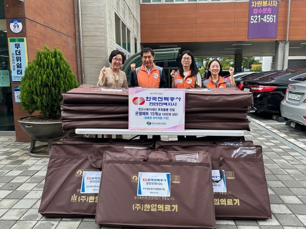 [세종타임즈] 천안시 청룡동은 지난 18일 한국전력공사 천안전력지사이 추석명절을 앞두고 저소득층에게 전달해 달라며 온열매트 15개를 후원했다고 밝혔다.