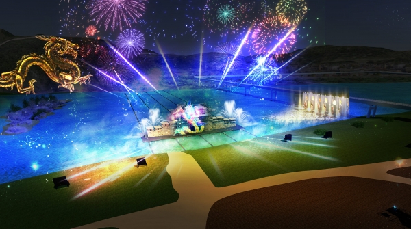 백제금동대향로를 두르고 있는 원형 워터커튼에 미디어 맵핑을 해 영상과 조명, 소리, 불꽃 등이 어우러지는 종합 미디어의 대향연이 펼쳐질 예정이다.