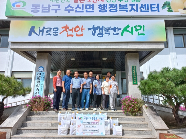 [세종타임즈] 천안시 수신면은 지난 23일 달빛사랑봉사단이 추석 명절을 맞이해 선물 꾸러미를 후원했다고 밝혔다.