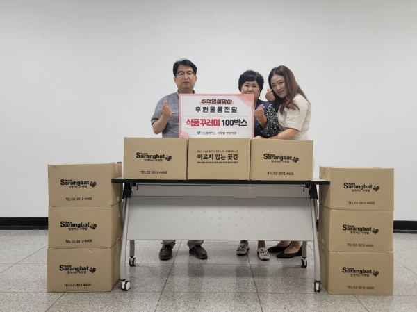 [세종타임즈] 함께하는사랑밭 천안지부가 26일 추석명절을 맞아 취약계층을 위한 식품꾸러미 100박스를 천안시 불당1동에 전달했다.