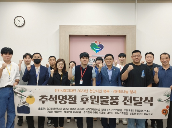 재단은 지난 9월 1일부터 14일까지 취약계층 이웃들의 따스한 추석 명절맞이를 위해 ‘2023 천안시민 행복·정 나눔’ 캠페인을 열고 명절선물세트, 라면, 백미, 생필품 꾸러미 등을 후원받았다.