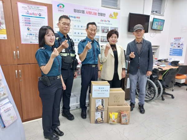 [세종타임즈] 천안시 원성2동은 지난 26일 천안동남경찰서 남산지구대가 지역 내 소외된 이웃을 위해 사용해 달라며 위문품을 전달했다고 밝혔다.