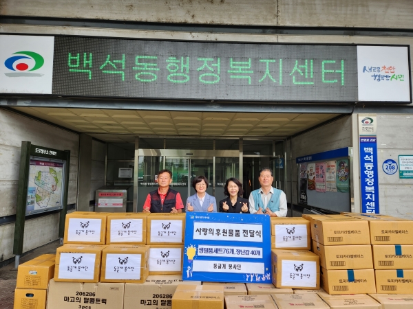 김수진 백석동장은 “지역사회 나눔을 실천해 주시는 봉사단의 따뜻한 마음에 감사 인사드린다”며 “기부해 주신 후원물품은 백석동 대상자에게 정성껏 전달해 따뜻한 추석명절을 보내실 수 있도록 하겠다”고 말했다.