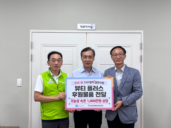 [세종타임즈] 뷰티플러스는 지난 26일 추석을 앞두고 원성1동 취약계층에 사용해달라며 남녀 요실금팬티 1,000장과 치약 200개 등 1,000만원 상당의 후원물품을 기부했다.