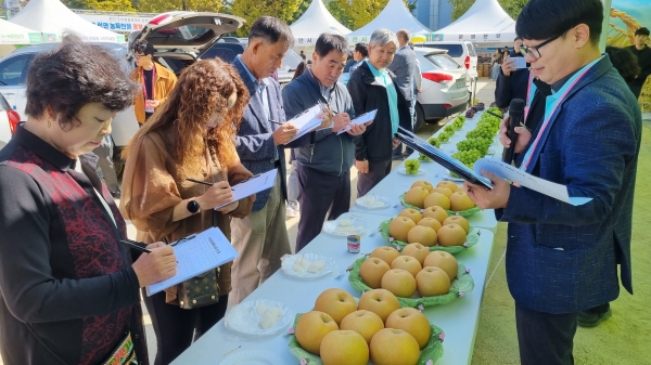 품목별로는 샤인머스캣 입장면 이안종 씨, 거봉포도 입장면 김명진 씨, 배 직산읍 이욱용 씨, 다다기오이 수신면 정하연 씨, 청오이 동면 김준수 씨, 호두 광덕면 임세철 씨, 고추 광덕면 김진호 씨, 표고버섯 성거읍 신선봉 씨, 계란 성남면 방병도 씨, 꿀 원성동 이창호 씨가 각각 우수 농산물로 선정됐다.