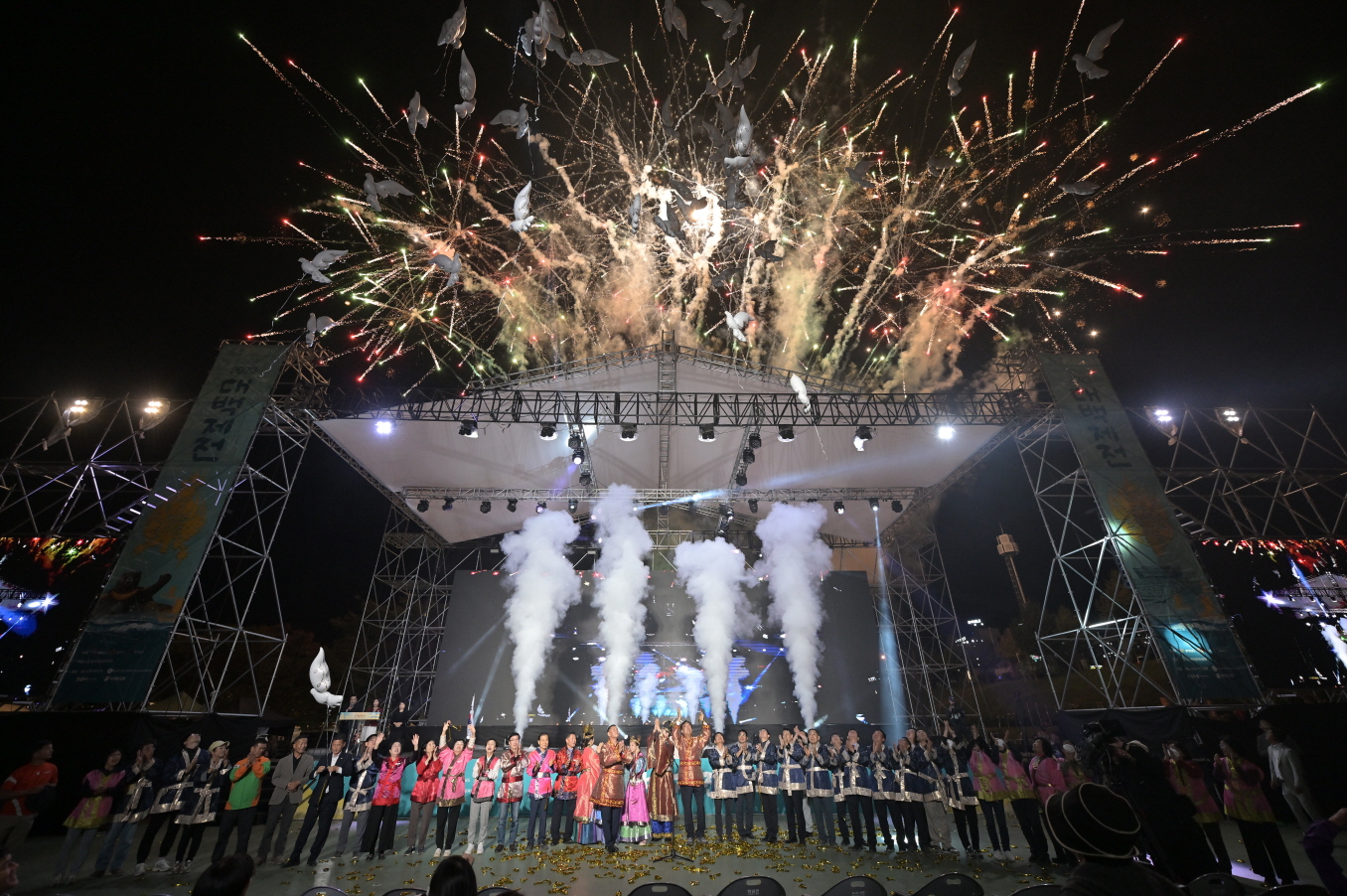 이어 김호중, 홍지윤, 정다경, 금잔디 등 국내 정상급 트로트 가수들의 열정적인 축하공연과 황홀한 멀티 불꽃쇼가 1500년만에 화려하게 부활한 백제의 마지막 밤하늘을 화려하게 수놓았다.