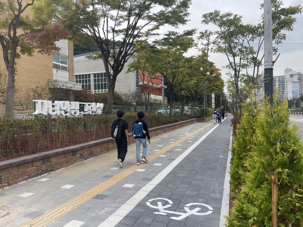 또 앉음벽을 설치해 학생들이 더운 날에는 나무 그늘에 잠시 쉬어 갈 수 있도록 조성했다.
