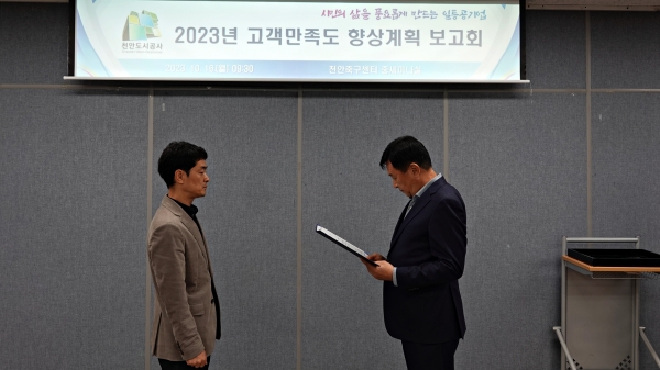 [세종타임즈] 천안도시공사는 지난 16일 부서장과 실무자 등 45명이 참석한 가운데 고객만족도 향상을 위한 보고회를 개최했다고 밝혔다.