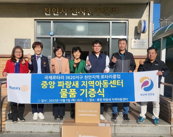 [세종타임즈] 국제로타리 3620지구 천안지역은 지난 15일 ‘행복나누기÷ 희망더하기+ 한마음 체육대회’를 개최하면서 백석동 소재 중앙파랑새지역아동센터에 후원물품을 기부했다.