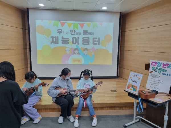 이번 ‘학생 자율 동아리 재능이음터’ 발표회는 그동안 우만동의 활동 중 인상 깊거나 공유하고 싶은 프로그램을 학생들이 직접 기획해 다른 학생들에게 소개하고 자신의 재능을 기부하는 활동으로 운영됐다.