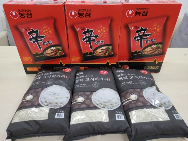 정 씨는 지역의 어려운 이웃들에게 전달해 달라며 포상금으로 구입한 라면과 쌀을 성정2동에 기부했다.