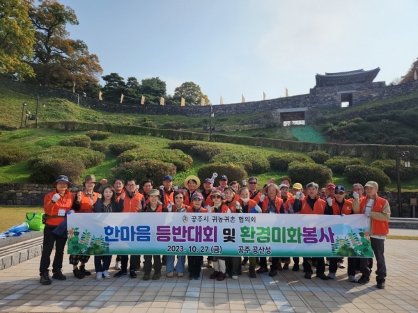 [세종타임즈] 공주시 귀농귀촌협의회는 지난 27일 귀농귀촌 활성화와 단체 화합 강화, 지역사회 봉사를 위해 공산성 일원에서 한마음 등반대회 및 환경미화 봉사를 실시했다고 밝혔다.